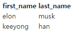 SELECT 'keeyong' as first_name, 'han' as last_name