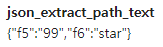 SELECT JSON_EXTRACT_PATH_TEXT('{"f2":{"f3": "1"},"f4":{"f5":"99","f6":"star"}}','f4', 'f6');