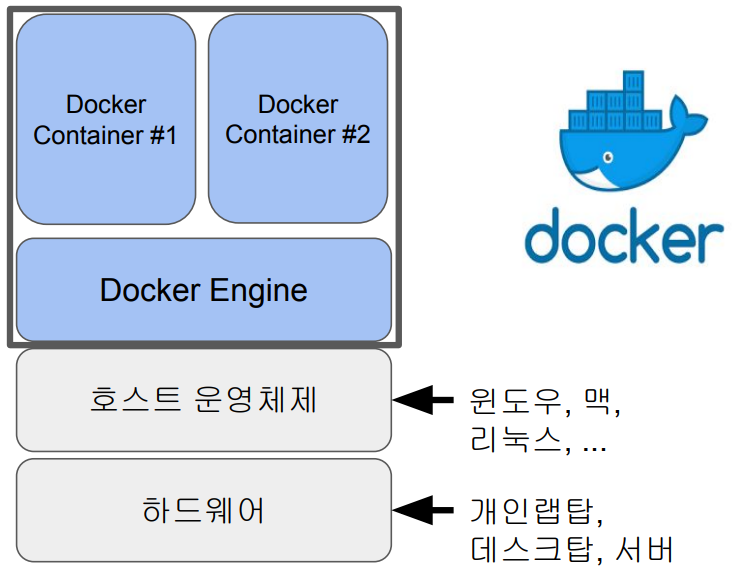 Docker Engine만 실행하면 그 위에서 다양한 소프트웨어들을 충돌없이 실행 가능
