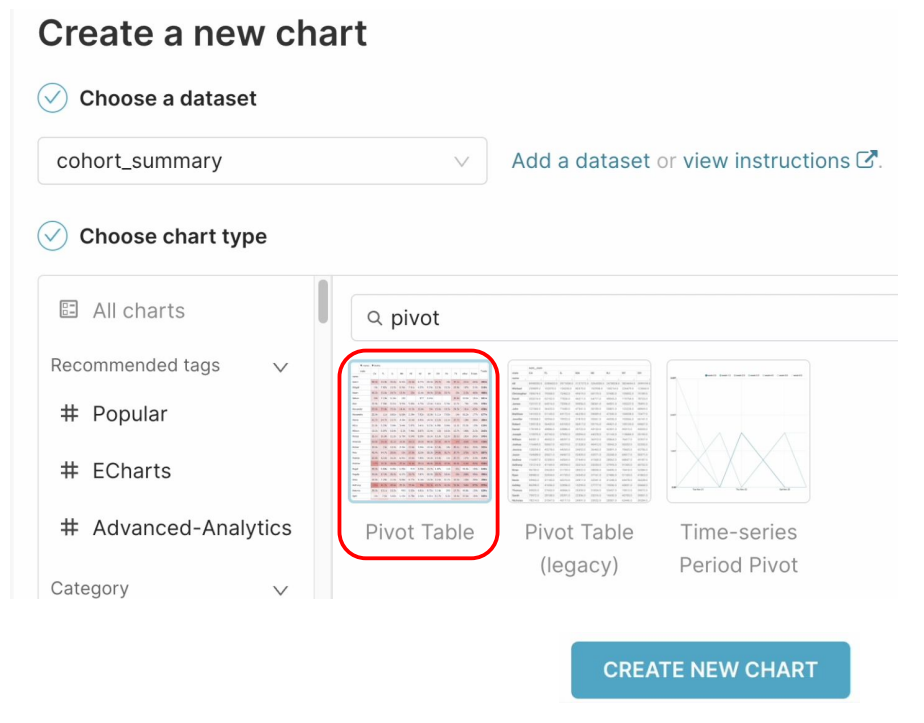 pivot 타입을 선택할겁니다. (현재 Pivot Table(legacy)는 사라졌습니다.)