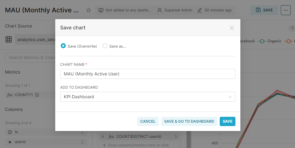4. 아까 만든 MAU 차트를 대시보드에 추가