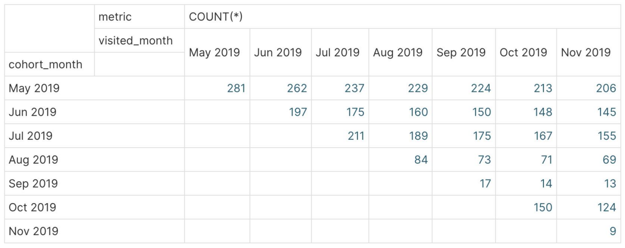 1번 형태의 cohort 차트가 만들어졌습니다.