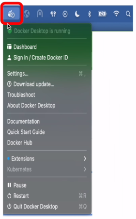 Docker 아이콘이 메뉴바에 보이는지 확인