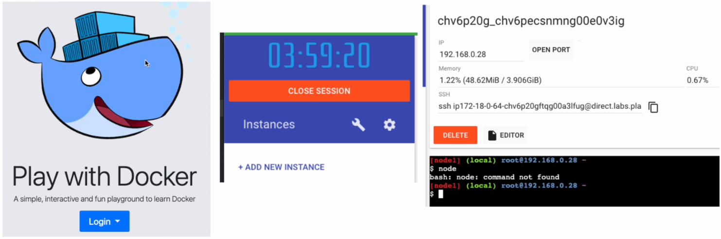 https://labs.play-with-docker.com/ 를 사용해서 4시간동안 서버를 하나 무료로 사용