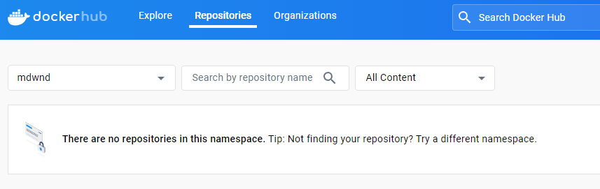 현재 저의 Docker Hub에는 어떤 repository도 존재하지 않습니다.