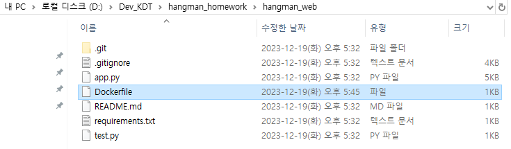 Dockerfile의 위치는 hangman_web에 위치시킵니다.