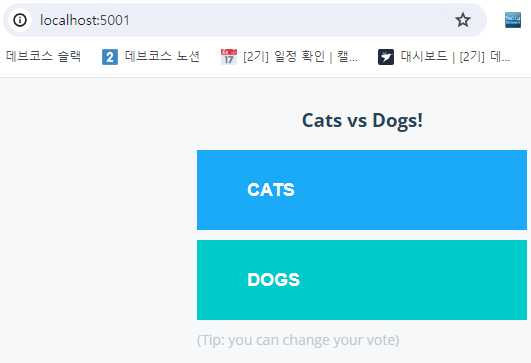 vote의 5001에 접속해 강아지에 투표하니 제대로 체크가 됩니다.