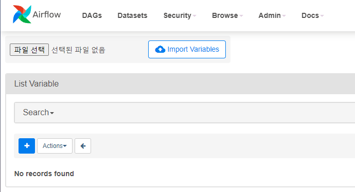 Web UI 상에서는 Admin > Variables로 가보니 아무 변수들이 없다고 뜹니다.