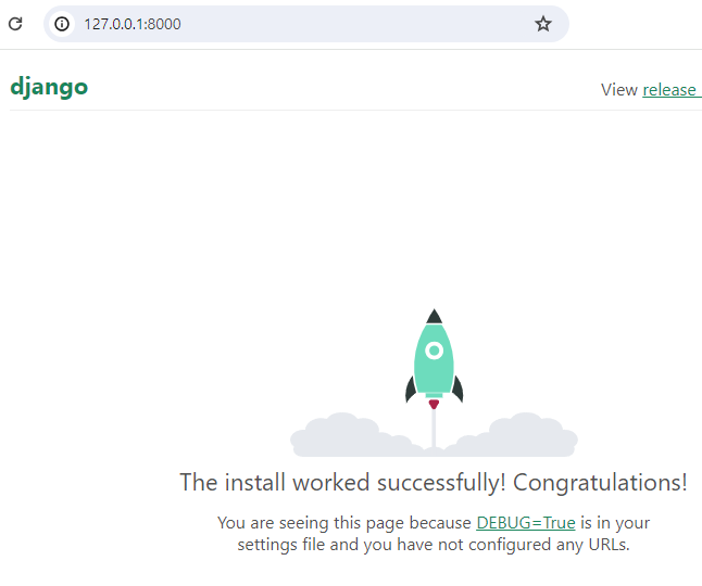 위와 같은 결과가 뜹니다. 여기에 적히 "http://127.0.0.1:8000/"라는 url을 브라우저로 열게되면