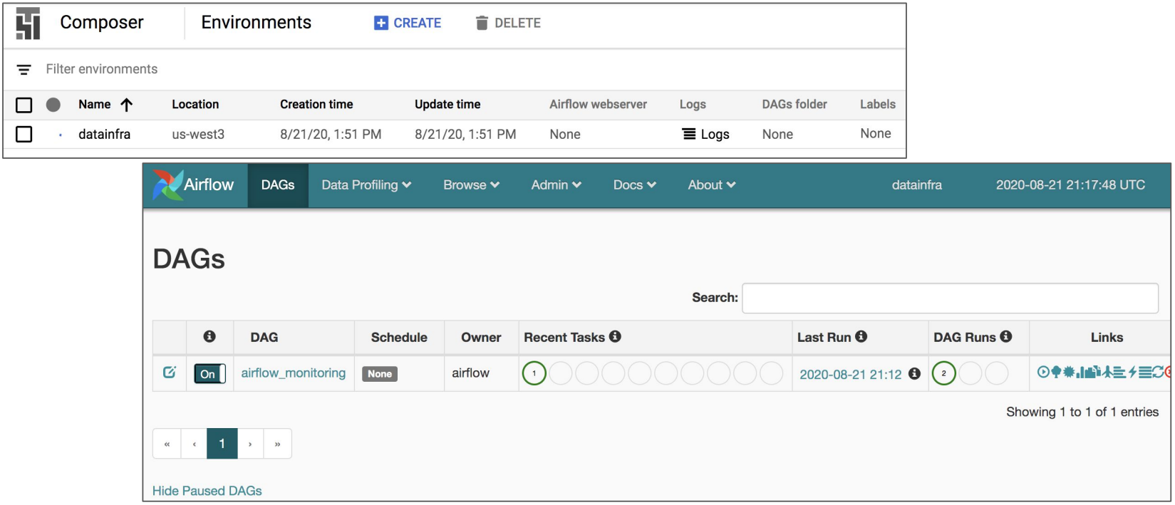 GCP’s Cloud Composer Screenshots
