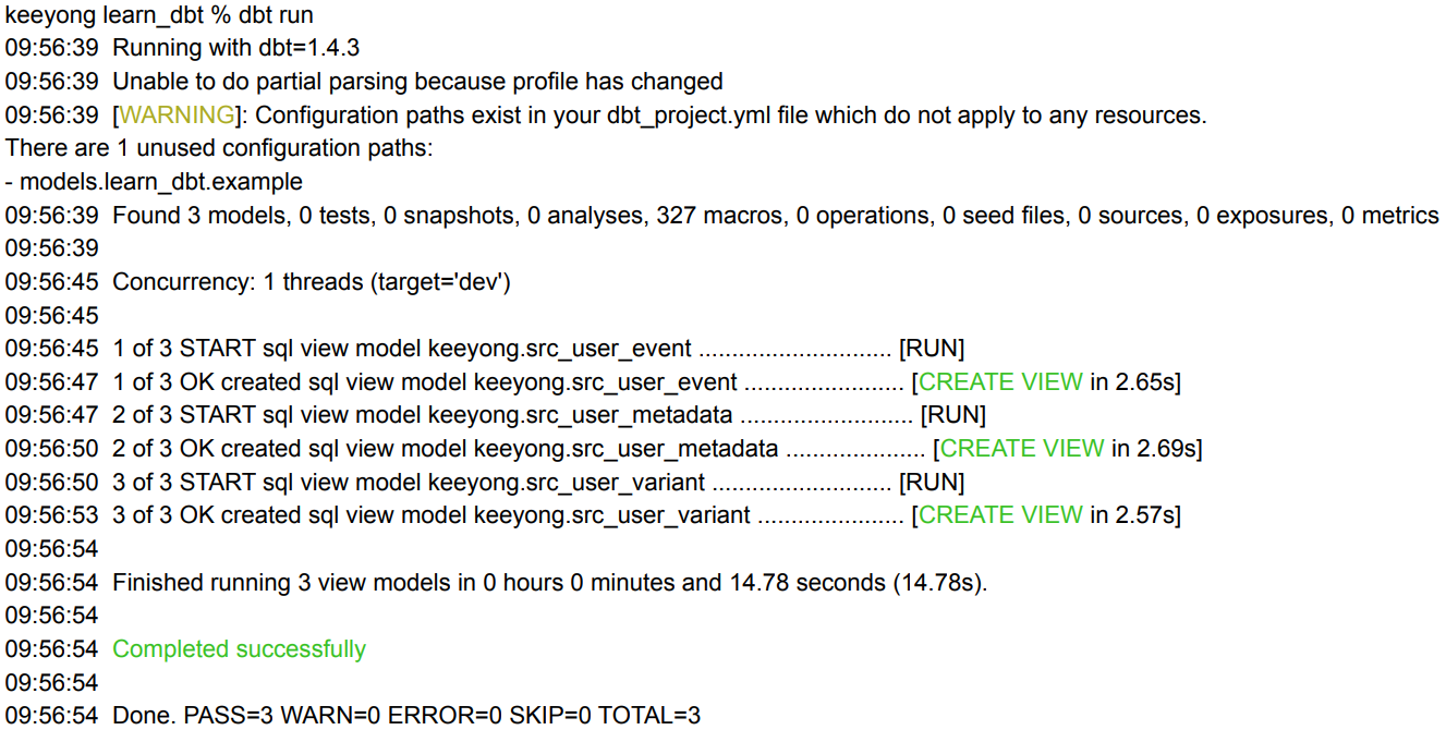 Model 빌딩: dbt run