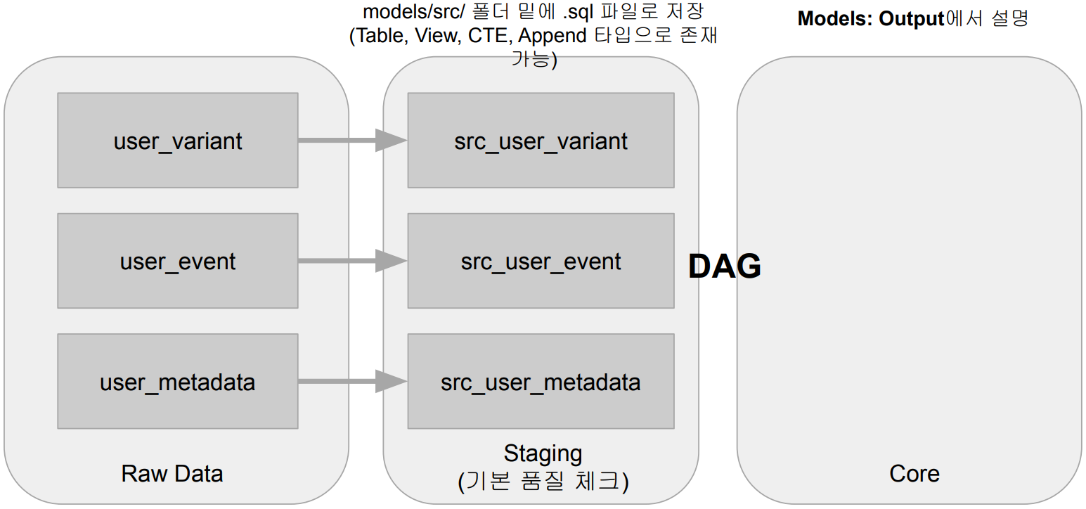 입력(raw)과 중간(staging, src) 데이터 정의