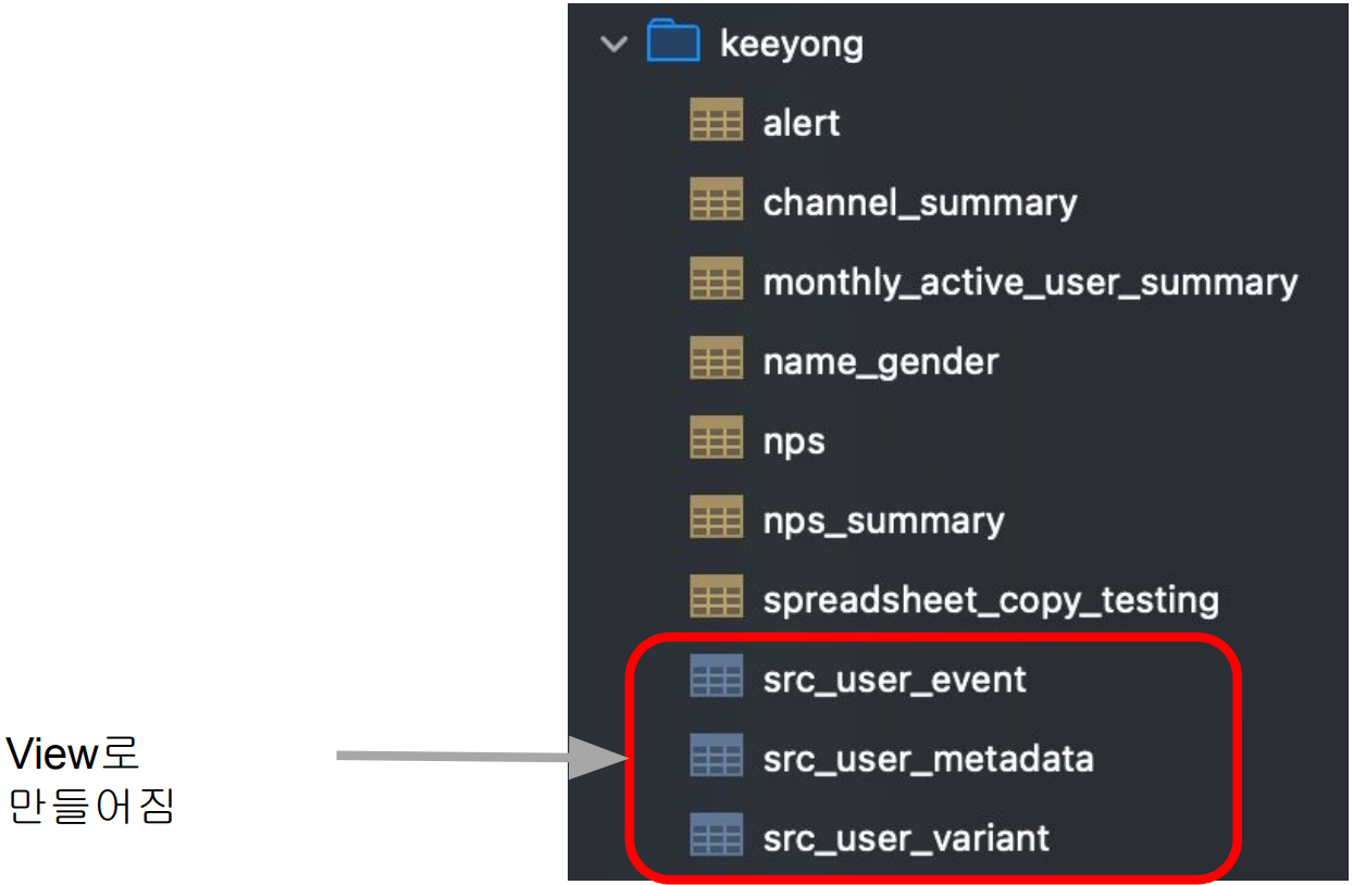 입력,중간,최종 테이블을 정의하는 곳