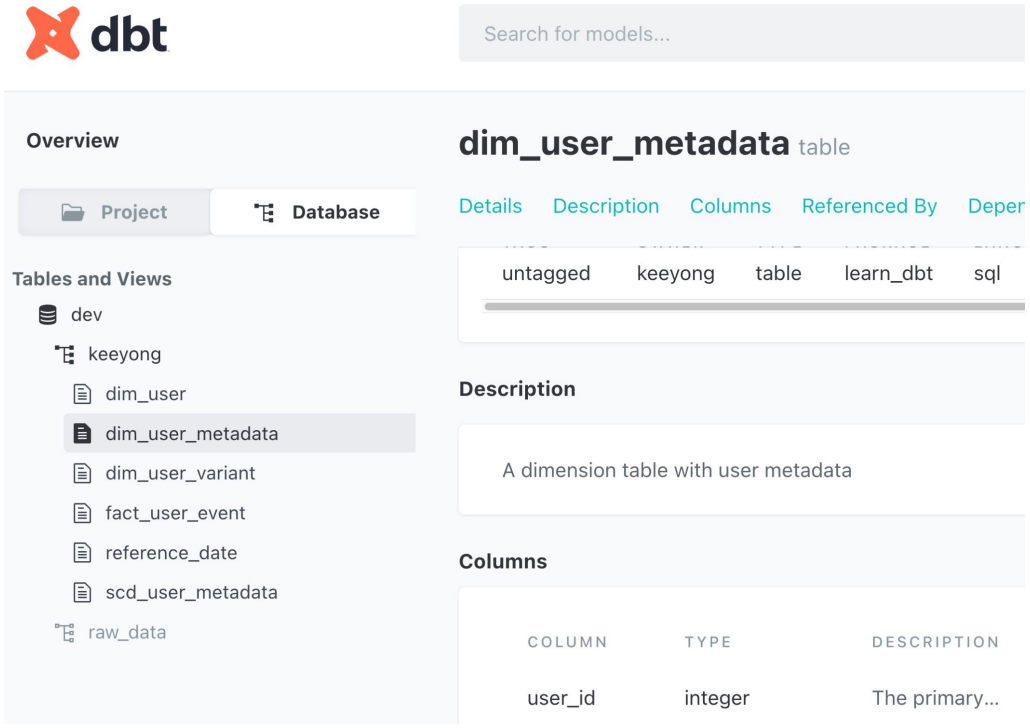 description 키를 추가: models/schema.yml, models/sources.yml