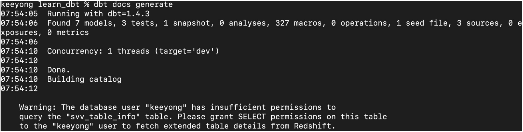 dbt docs generate