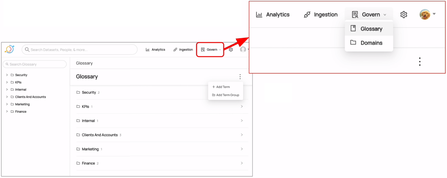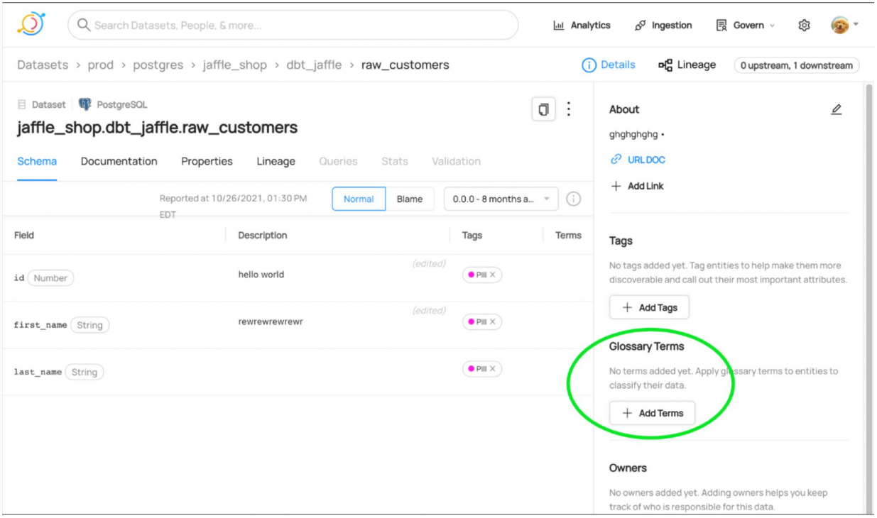 데이터 카탈로그 기능 - 비지니스 용어와 Entity 연결