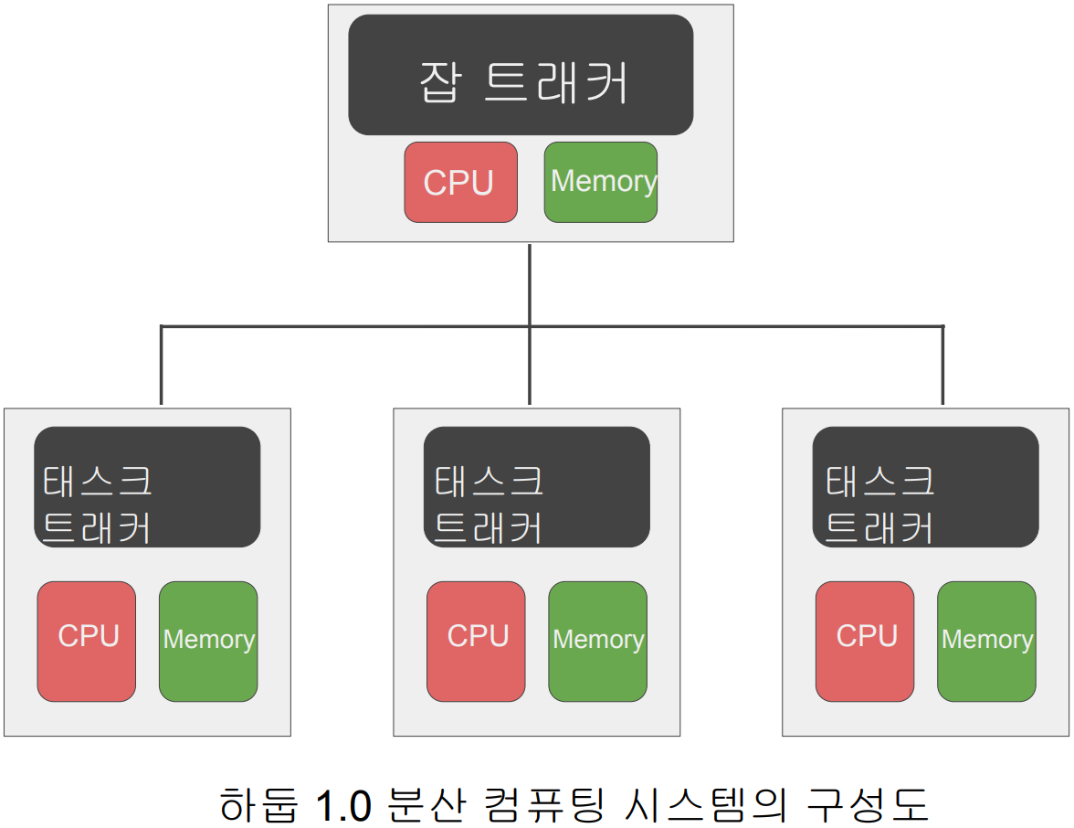 하둡 1.0은 HDFS위에 MapReduce라는 분산컴퓨팅 시스템이 도는 구조
