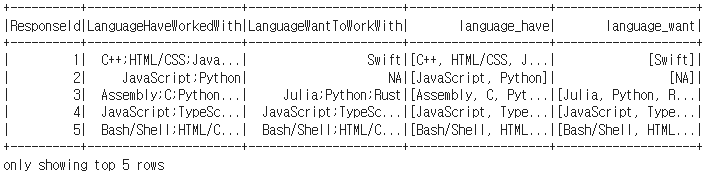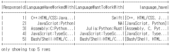이 때 F.col("LanguageHaveWorkedWith")는 "LanguageHaveWorkedWith" 컬럼의 내용들을 가리킵니다.