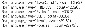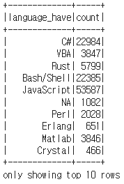 df_language_have.groupby("language_have").count().orderBy('count', ascending=False).collect()