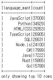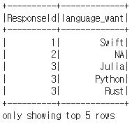 df = spark.read.csv("survey_results_public.csv", header=True).select('ResponseId', 'LanguageHaveWorkedWith', 'LanguageWantToWorkWith')