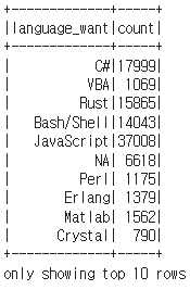 |-- LanguageWantToWorkWith: string (nullable = true)