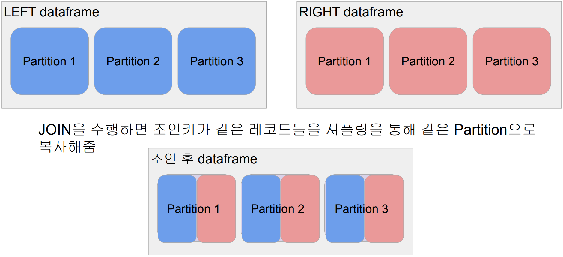양쪽 데이터 프레임 모두 셔플링이 되므로 최적화 관점에서는 다소 비권장