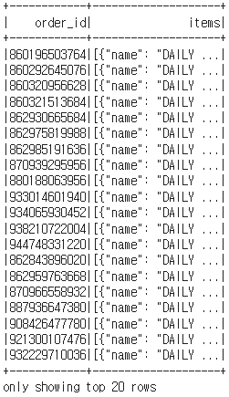 order.withColumn("item", explode(from_json("items", struct))).show(truncate=False)