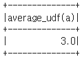spark.sql('SELECT average_udf(a) FROM test').show()