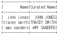 SELECT name, upper_udf(name) `Curated Name` FROM test