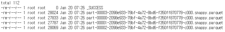 기본적으로 압축이 되지만 snappy로 압축되었는데 splittable한 압축이며 블록 단위로 나눌 수 있는 유용한 방식입니다.