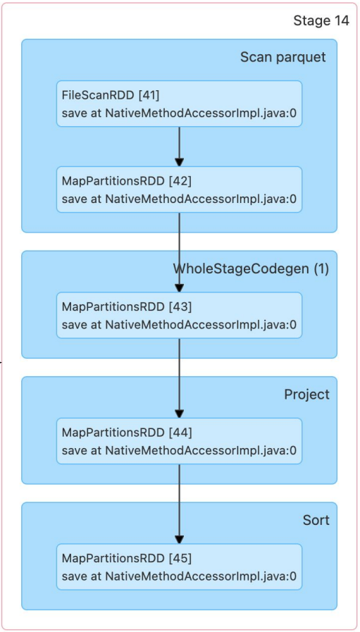 Action을 통해 실행되는 연산들을 Job이라고 부릅니다. 내가 작성하는 Spark 코드는 하나 혹은 그 이상의 Job으로 구성되는 것이고 하나의 Job은 다수의 Transformation으로 구성됩니다. 그런데 Transformation들을 Narrow냐 Wide냐로 나누어 스테이지라는 것을 다시 구성합니다.