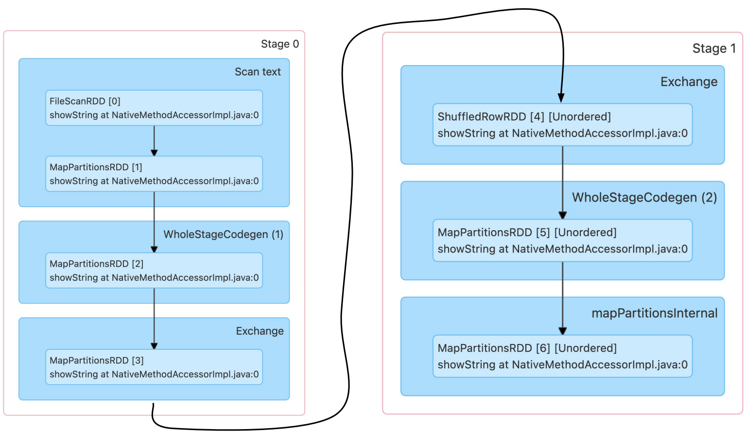 이러한 시각화는 Spark WEB UI에서 볼 수 있습니다. 로컬이라면 http://192.168.0.16:4040/SQL/execution/?id=0 링크에서 확인할 수 있습니다.