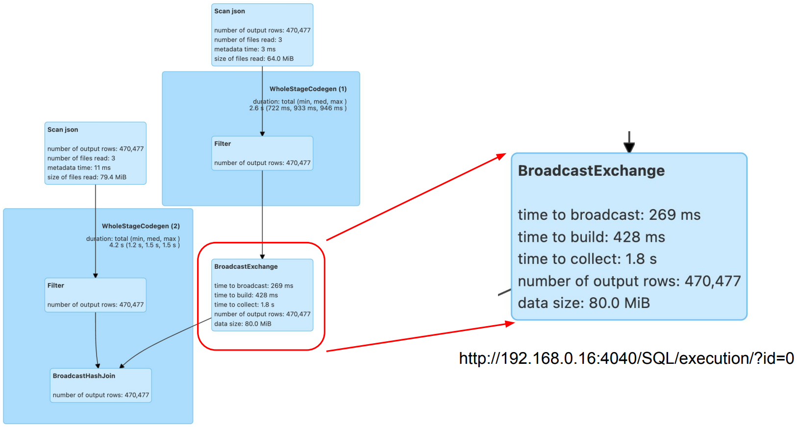 이러한 시각화는 Spark WEB UI에서 볼 수 있습니다. 로컬이라면 http://192.168.0.16:4040/SQL/execution/?id=0 링크에서 확인할 수 있습니다.