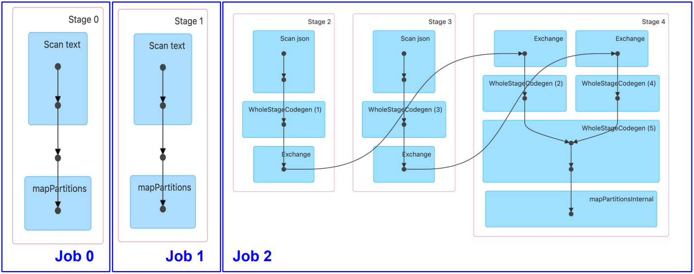 Job은 3개 만들어집니다. read.json에서 large_data, small_data를 처리할 때 2개, show에서 1개 만들어집니다.