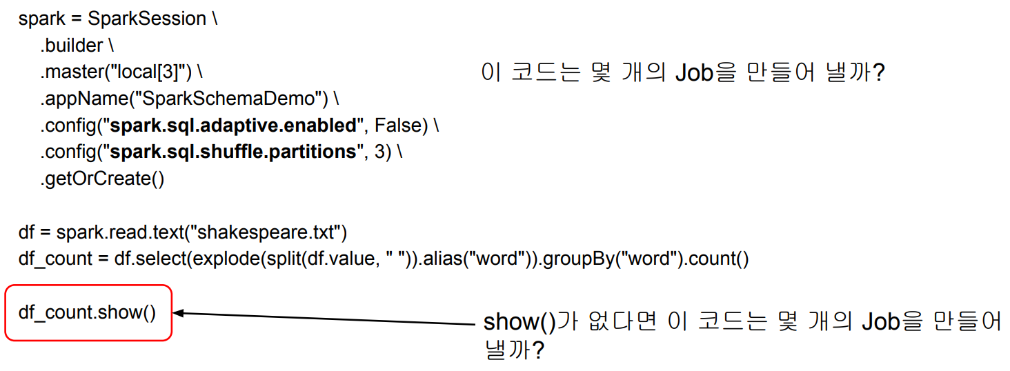 만약 show()가 없다면Job은 0개입니다. (Lazy Execution)
