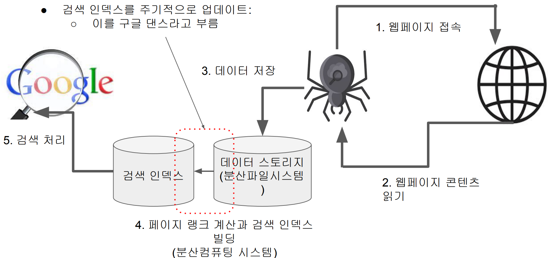페이지 랭크의 계산은 대용량 컴퓨팅 인프라와 소프트웨어 없이는 불가능