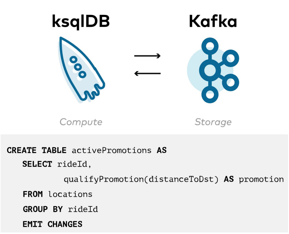 ksqlDB를 다르게 생각하면 Kafka 토픽을 스토리지로 쓰고 그 스토리지에 저장된 토픽을 SQL로 계산할 수 있게 해주는 서비스라고 보시면 됩니다.