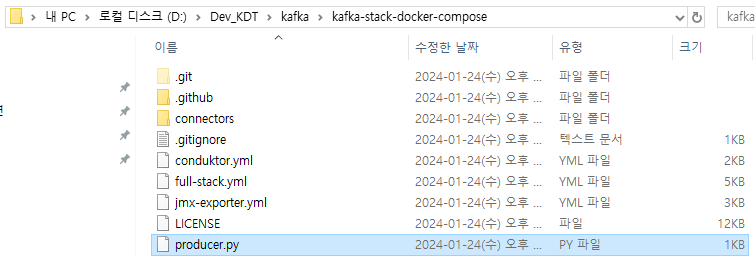위에서 살펴본 producer.py를 루트 디렉토리에 놓은 후