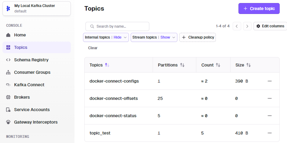 Kafka 웹 콘솔에서 Topic 생성 여부 확인