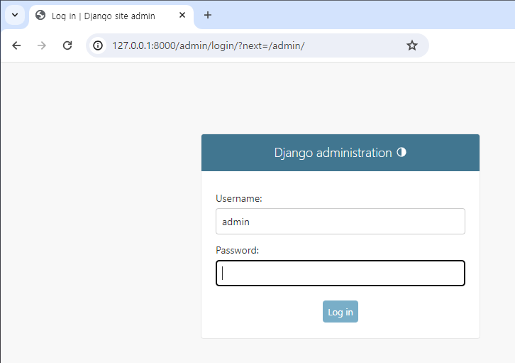 우리가 프로젝트를 만들었을 때 이미 작성되어 있던 path("admin/" ~ 이 어드민 페이지로 접속하는 url이었습니다.