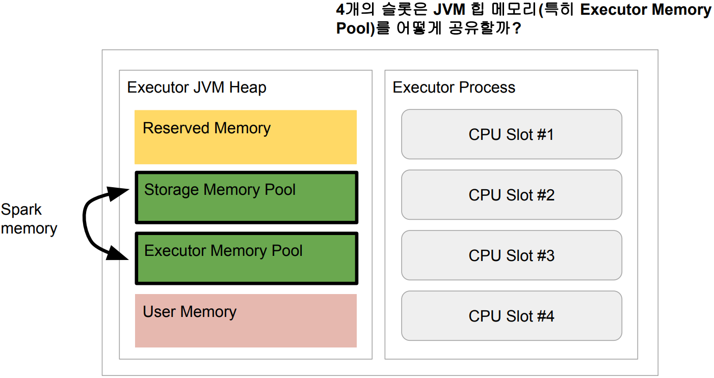 ● DataFrame 캐싱을 하기위한 메모리가 부족해지면 Executor Memory Pool에 남는 메모리 사용