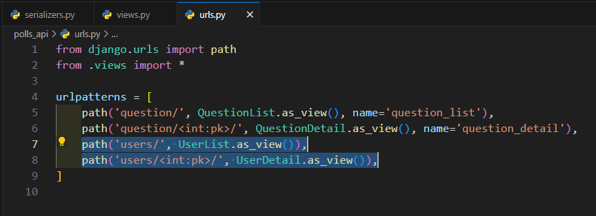 Serializer, views, urls 코드를 작성했으니 브라우저에서 확인해봅시다.